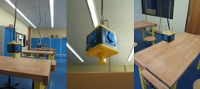 Schulzentrum: Instandsetzung der Rauminstallationen und Unterverteilung, Sanierung der Beleuchtungsanlage, sowie Maschinenanschlüsse und Versorgungspendel für Arbeitsplätze. |